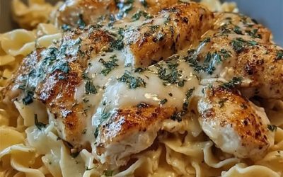 Malse kip, pan-geschroeid tot goudkleurig, gecombineerd met boterachtige noedels en een romige, met kruiden doordrenkte champignonsaus. Dit is het soort…