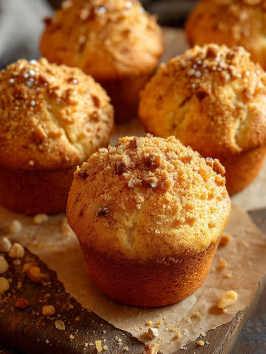 Voeg op het einde de grove suiker toe voor de karakteristieke knapperige bovenkant zoals op de foto. - Muffins vullen en afwerken